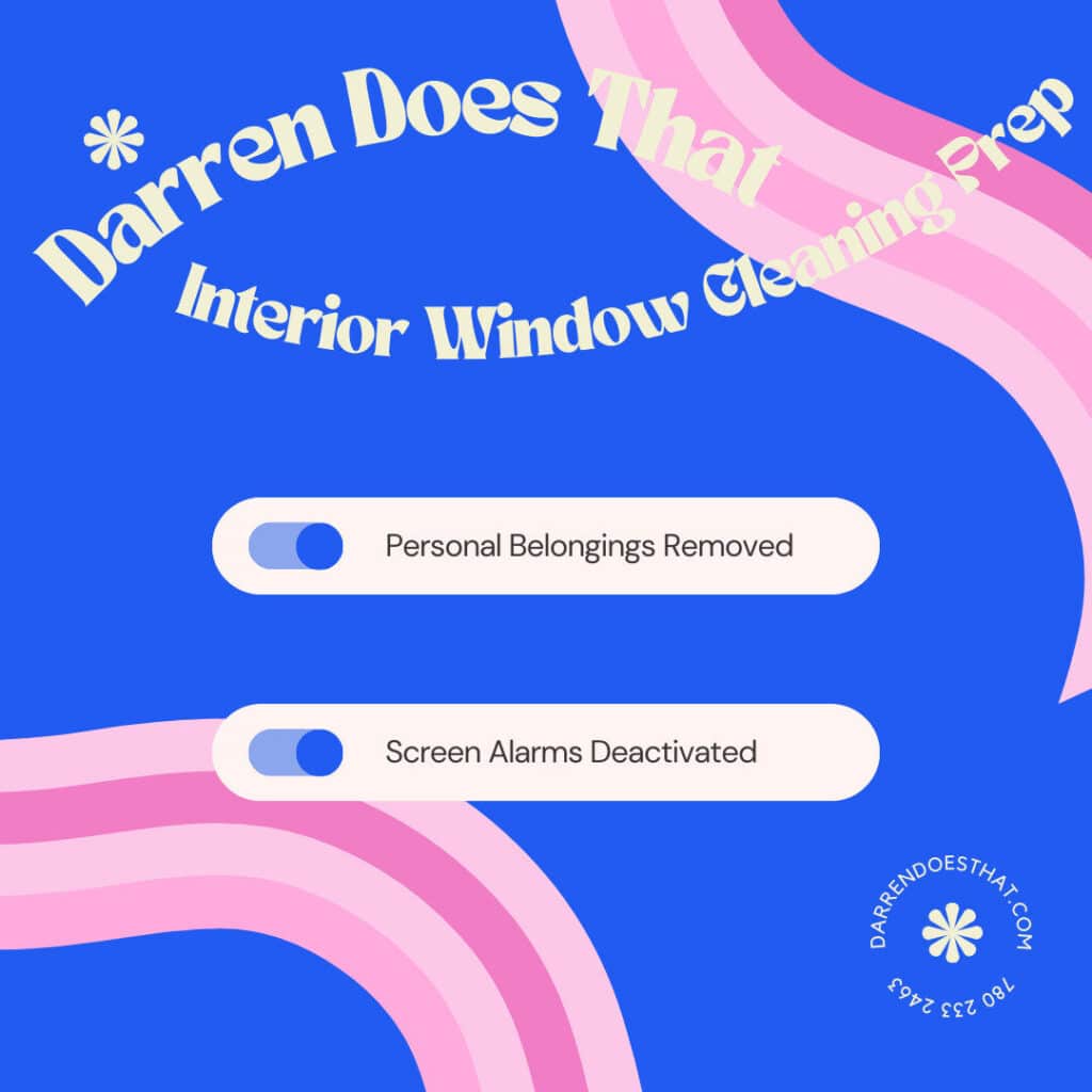 Deactivate Screen Alarms: If your screens scream when they’re taken out, please call your security company to have the alarms turned off for your visit. We need to take them out to get the best cleaning.